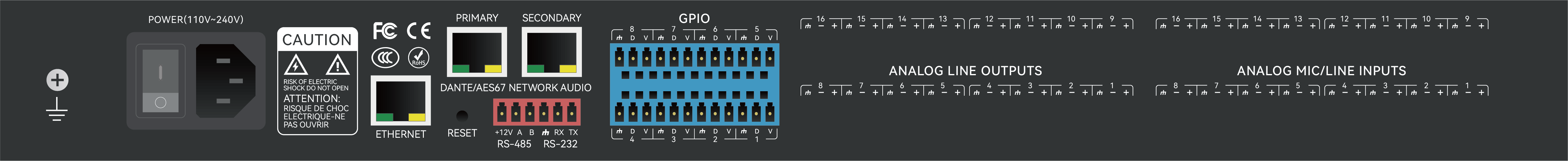 2、Dante输出通道:64;