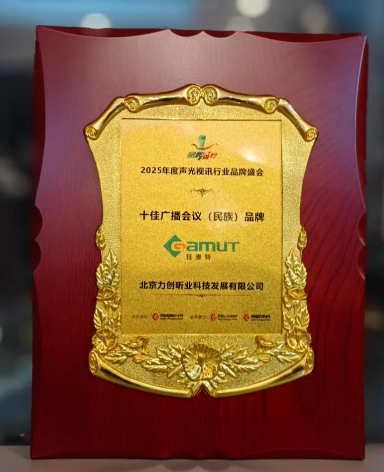 在同期举办的品牌盛典中,力创旗下品牌GAMUT(佳麦特) 凭借卓越的产品品质与技术创新能力,荣获 “十佳广播会议(民族)品牌” 大奖。